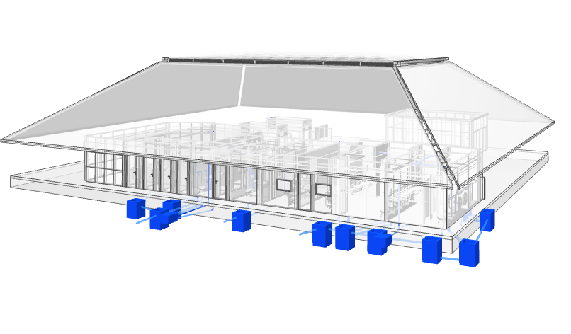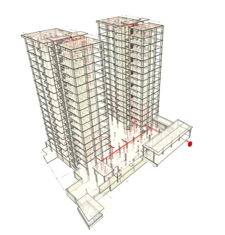 Desenvolvimento do projeto de rede de água fria e quente e casa de bombas de um hotel, realizado no REVIT.
