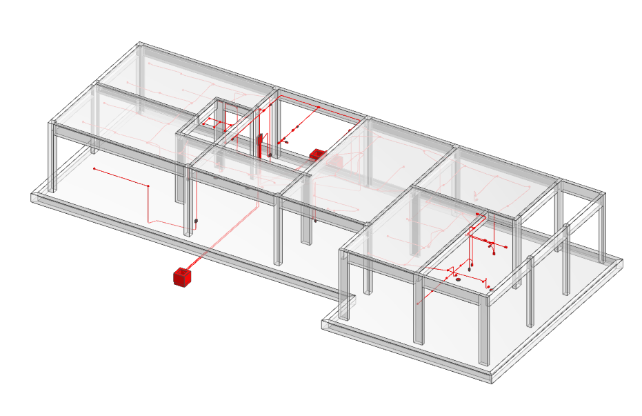 Desenvolvimento do projeto de rede de água fria e quente e casa de bombas de um hotel, realizado no REVIT.